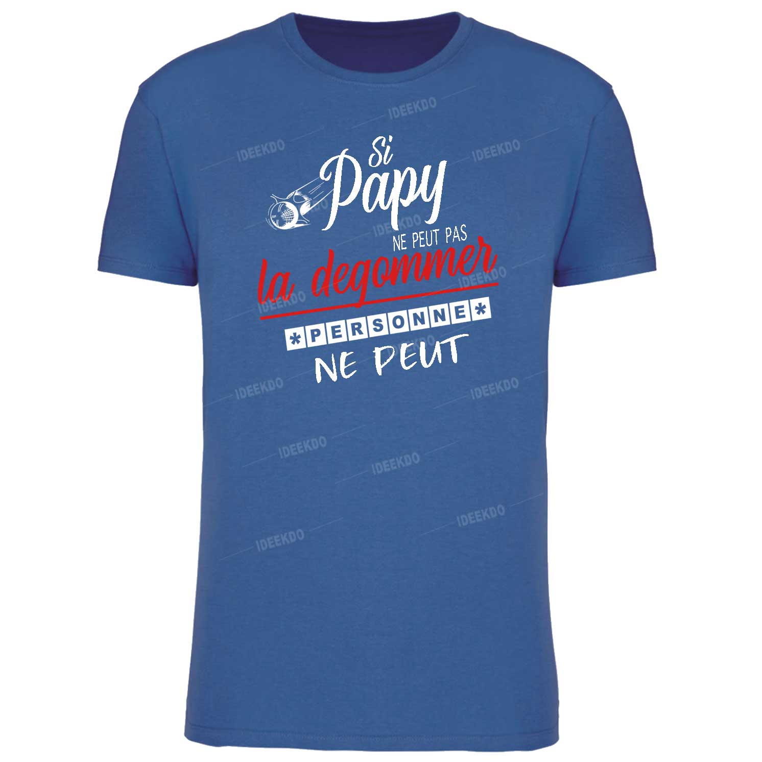 Si vous cherchez une idée cadeau, drôle et utile, ne bougez plus : ce t-shirt « Si papy ne peut la dégommer personne ne peut » est fait pour lui ! Pensé spécialement pour les grands-pères qui vivent pétanque, respirent pétanque et parlent cochonnet à longueur de journée. Ce t-shirt de pétanque coche toutes les cases : confort, qualité et clin d’œil à sa passion.